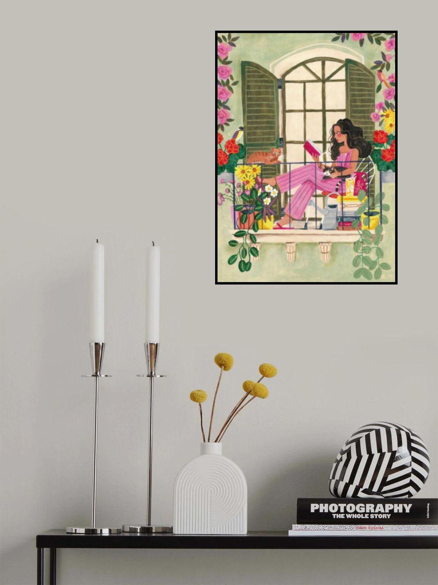 Woman reads on balcony