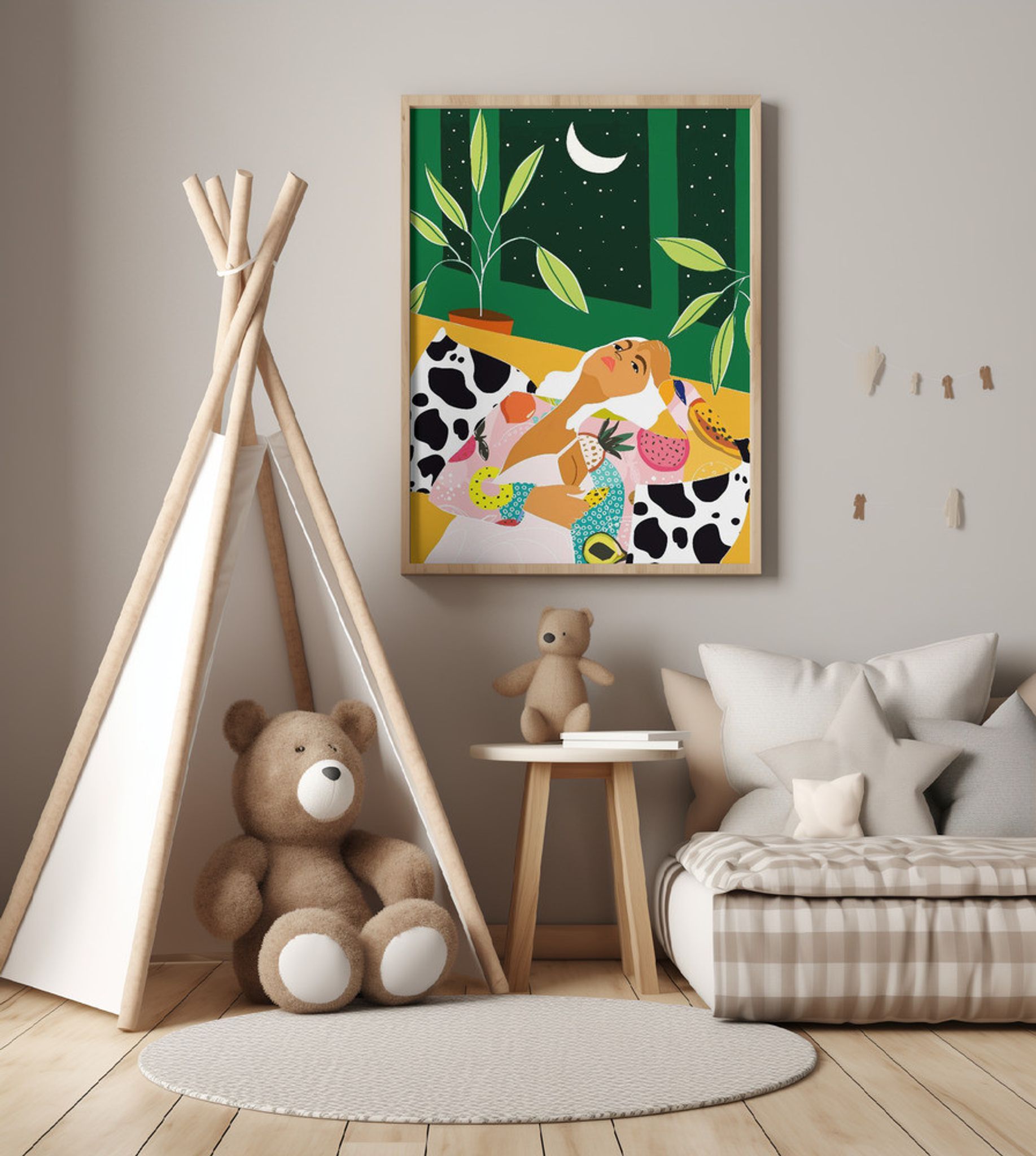 Woman Relaxing Under A Crescent Moon